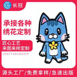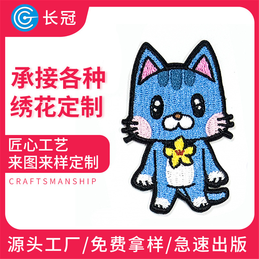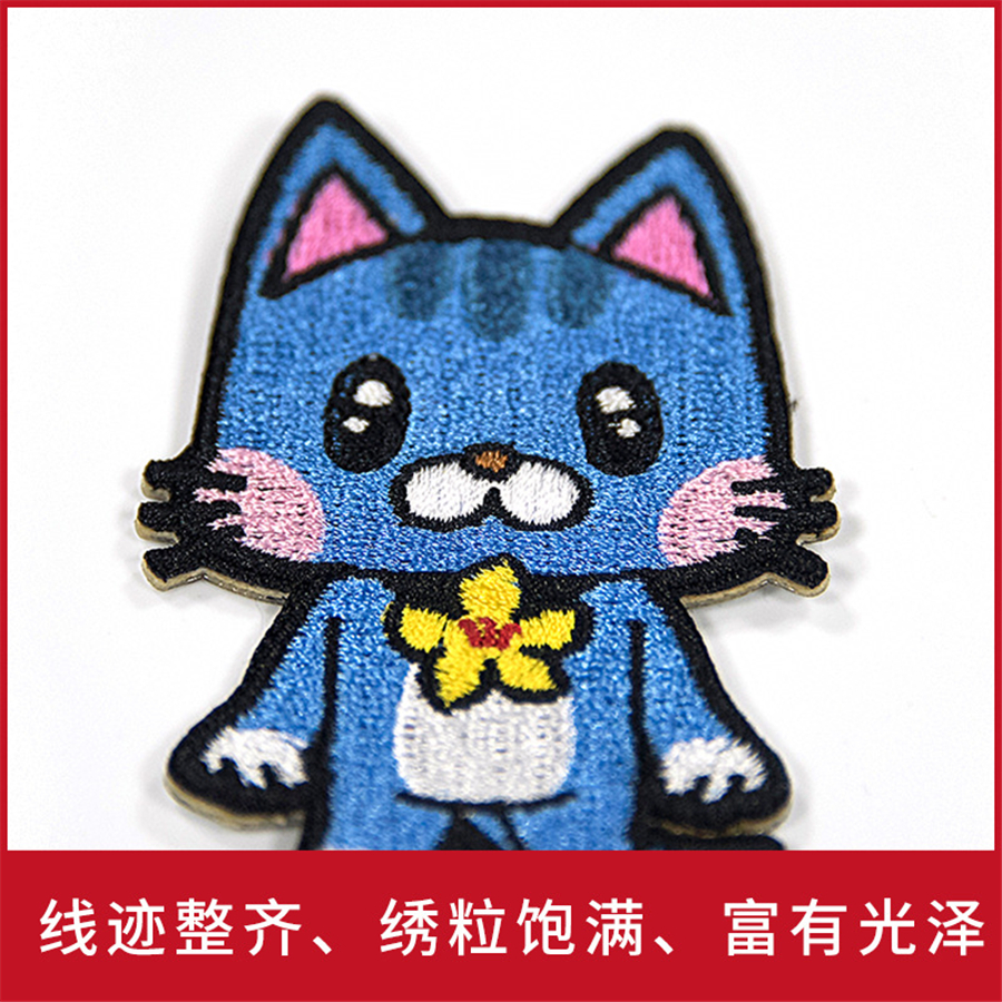 东莞绣花厂定制加工补丁贴贴布动物猫咪刺绣布贴绣花章仔刺绣布贴